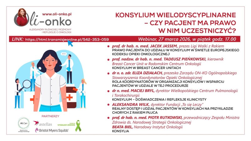 Webinar "KONSYLIUM WIELODYSCYPLINARNE – CZY PACJENT POWINIEN W NIM UCZESTNICZYĆ?" już dostępny na YouTube oraz vlogu Oli-ONKO!