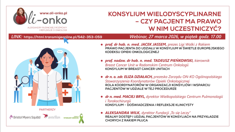 Zapraszamy do udziału w webinarze "KONSYLIUM WIELODYSCYPLINARNE - CZY PACJENT MA PRAWO W NIM UCZESTNICZYĆ", już 27 marca o godz. 17:00!